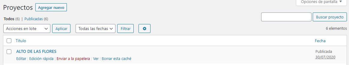 Una vez listado los proyectos podremos interactuar con cada uno de ellos colocando el cursor sobre el proyecto.