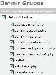 También se pueden crear nuevos grupos haciendo clic en “Nuevo Grupo”, escribir el nombre en el campo correspondiente y definir el acceso. Dicho nivel de acceso es configurado en “Nuevo Permiso” (Definir Grupos) marcando lo que corresponda. Ejemplos: