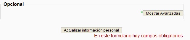 Ver “Política de contraseñas” para obtener más información. Otros campos que forman parte de un perfil de usuario también se pueden llenar cuando se crea el usuario. Algunos de los campos de perfil pueden ser mostrados pulsando el botón “Mostrar avanzadas”. La nueva información de usuario es salvada haciendo clic en el botón.