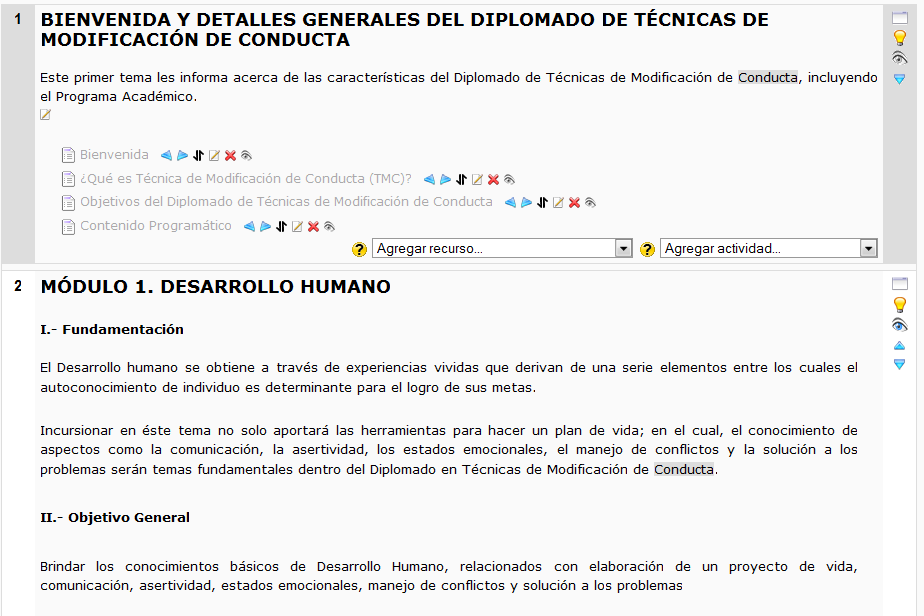 Cuando termine esta configuración vera su nuevo elemento didáctico en el bloque temático al final del mismo (lo podrá mover en el momento que lo desee).