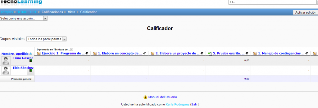 Cuando entre en cada una de ellas, tendrá la opción de editarla, usando el botón , colocado arriba a la derecha, en la barra de navegación del curso.
