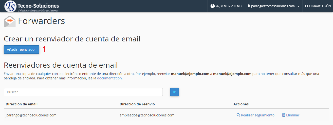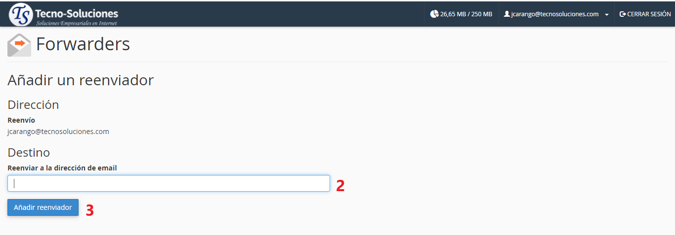 Para agregar un reenviador de correo, realice los siguientes pasos: