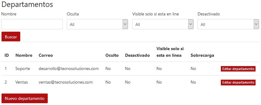 Para crear un nuevo Departamento, se debe hacer clic en “Nuevo departamento”: