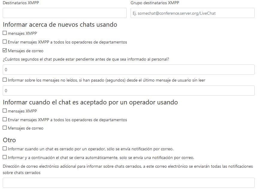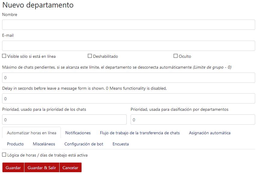 - Máximo de chats pendientes, Delay in seconds before: se pueden delimitar estos parámetros escribiendo la cantidad correspondiente, sin embargo, usualmente se dejan en cero.