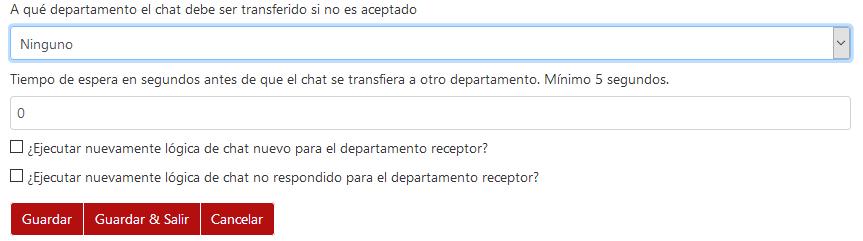 - Flujo de trabajo de la transferencia de chats: se puede definir a qué departamento el chat debe ser transferido si no es aceptado, el tiempo de espera, etc.