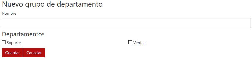 Se pueden crear Grupos de Departamentos. Se debe escribir el nombre del Grupo y marcar los Departamentos que pertenecerán a dicho Grupo.