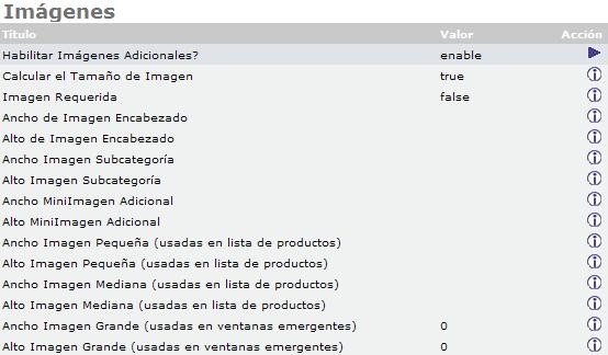 - Ancho / Alto de Imagen SubCategoría: Ancho y Alto en píxel de las imágenes de las Sub-Categorías que se visualizan en las páginas de las mismas.