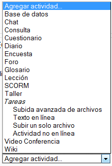 Esta caja contiene una lista desplegable de los módulos de