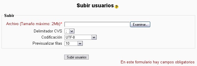 Ubicación: Administración> Usuarios> Cuenta> Subir usuarios