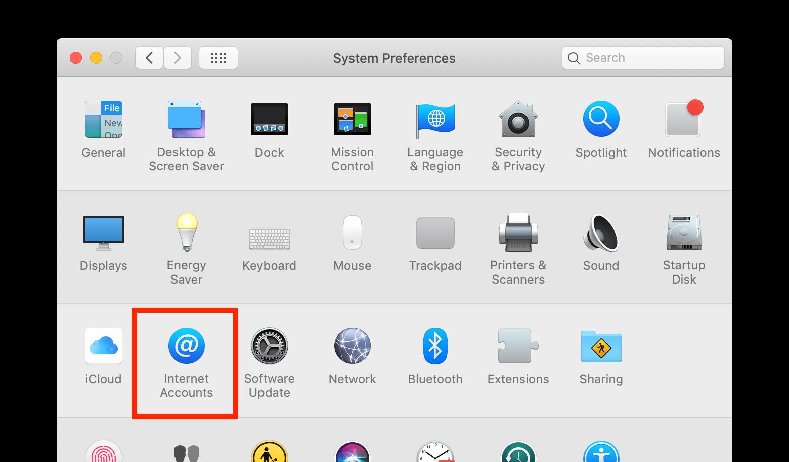 - Vaya a Cuentas de Internet .