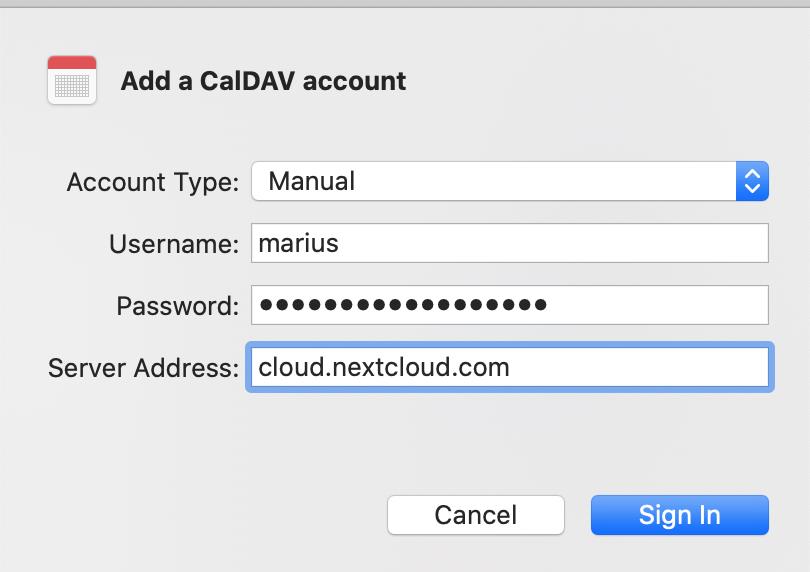 En los siguientes pasos, agregará los recursos de su servidor para CalDAV (Calendario) y CardDAV (Contactos) a su TecnoCloud.
