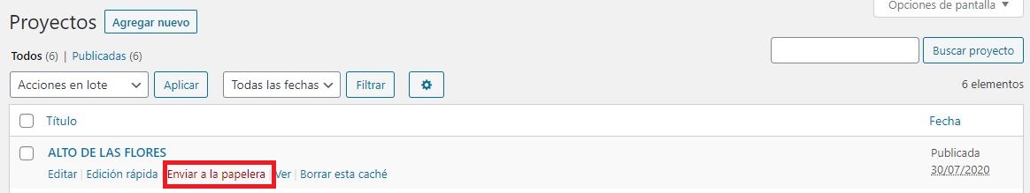 Al darle clic el proyecto pasará a una papelera que nos permitirá restaurarla en caso de que cambiemos de opinión.