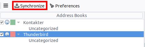- Cuando haya terminado, CardBook sincronizará sus libretas de direcciones. Siempre puede activar una sincronización manualmente haciendo clic en “Sincronizar” en la esquina superior izquierda de CardBook.