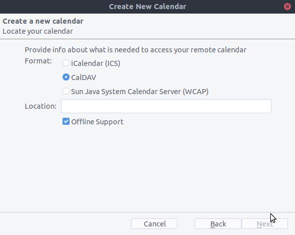 • Elija CalDAV y complete la información que falta:
