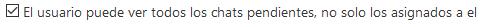 Por defecto, los operadores no tienen permiso para elegir qué chats pendientes pueden ver. Sin embargo, es posible otorgar permiso para elegir personalmente qué lista quiere ver, asignando permisos de Rol de Operadores.
