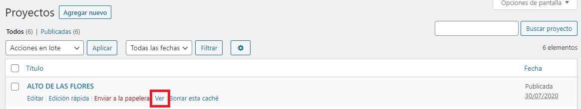 Esta opción nos permite ver el proyecto a nivel web. Sin embargo, corresponde a cada módulo y su configuración mostrar la información al público. Para este caso solamente se puede observar el título del proyecto.