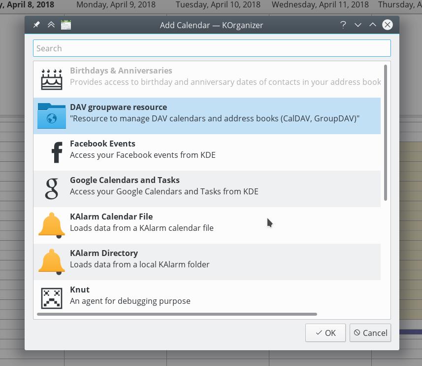- Después de unos segundos a minutos, dependiendo de su conexión a Internet, encontrará sus calendarios y contactos dentro de las aplicaciones KDE Kontact KOrganizer y KAddressBook.