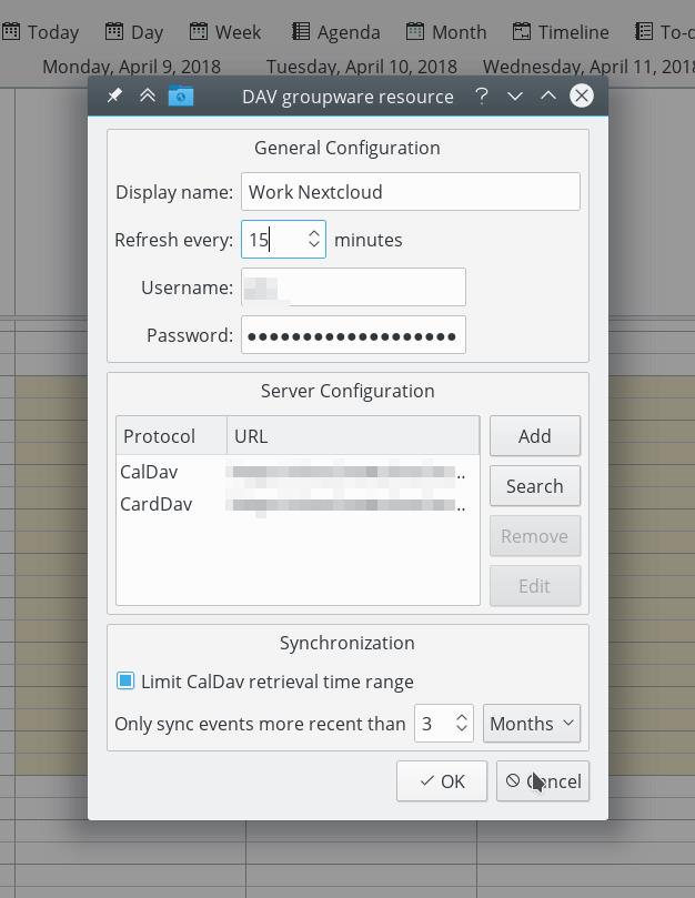 KOrganizer y KAddressBook pueden sincronizar su calendario, contactos y tareas con un servidor TecnoCloud.