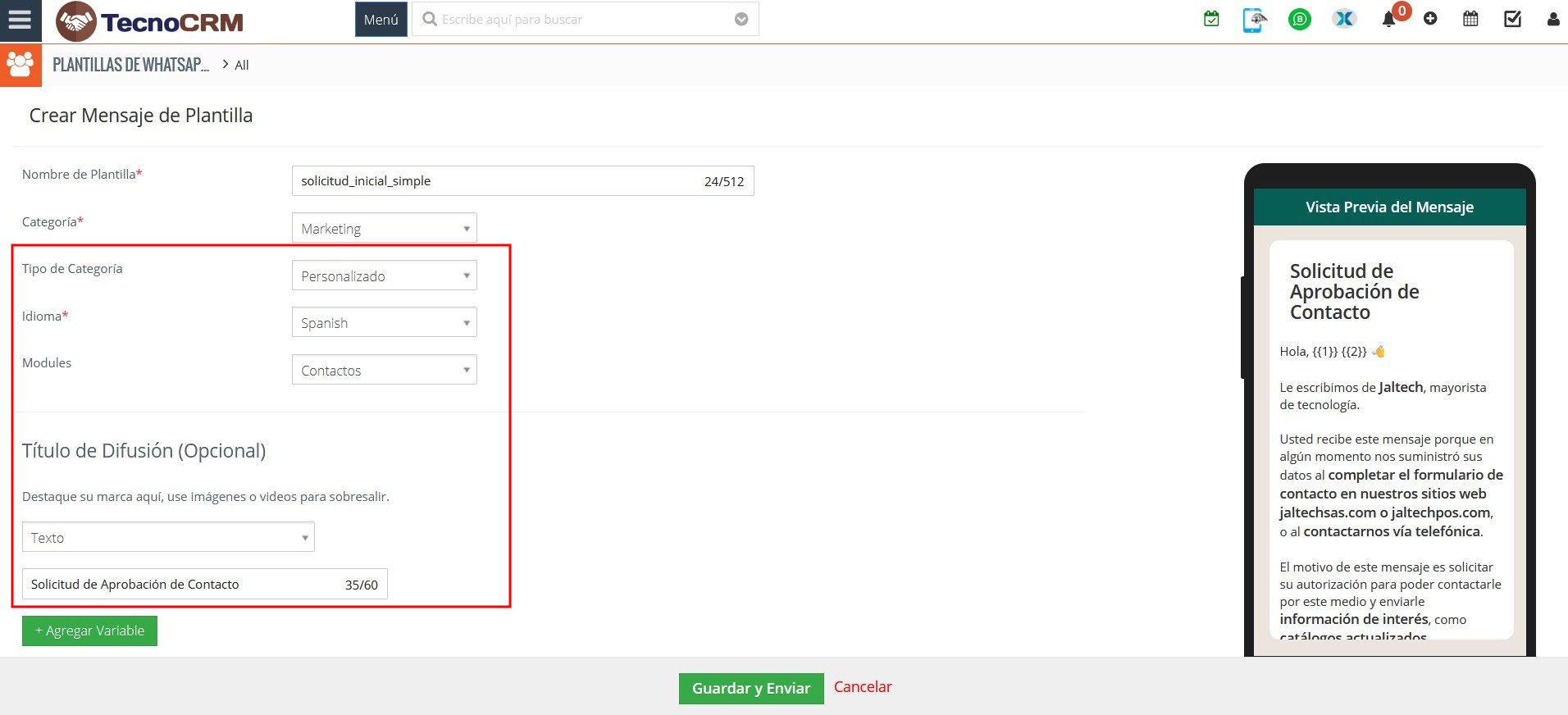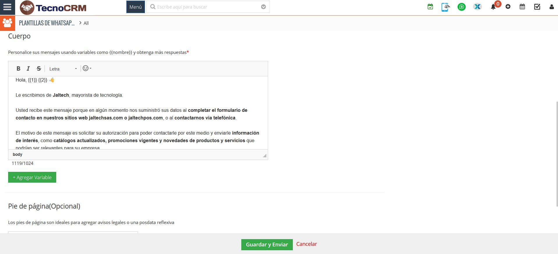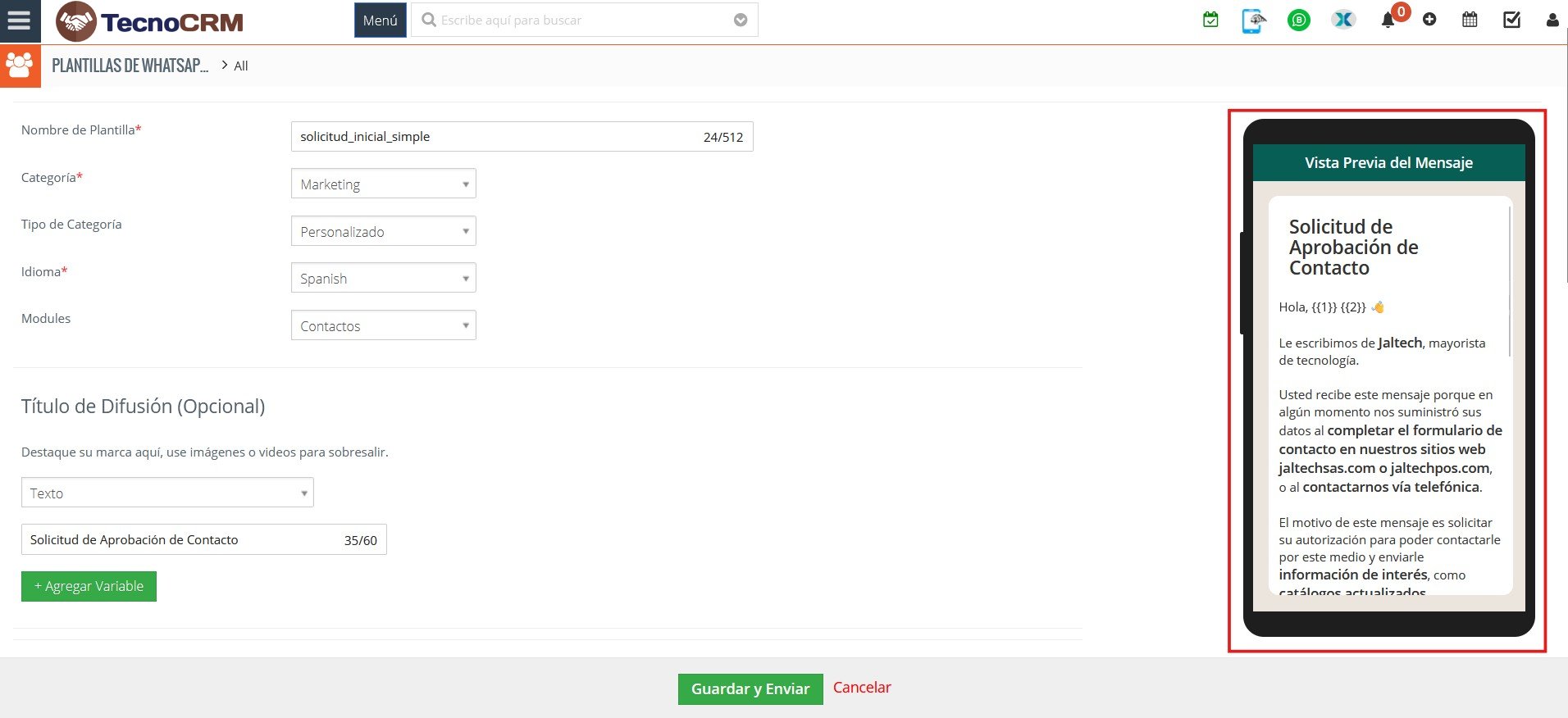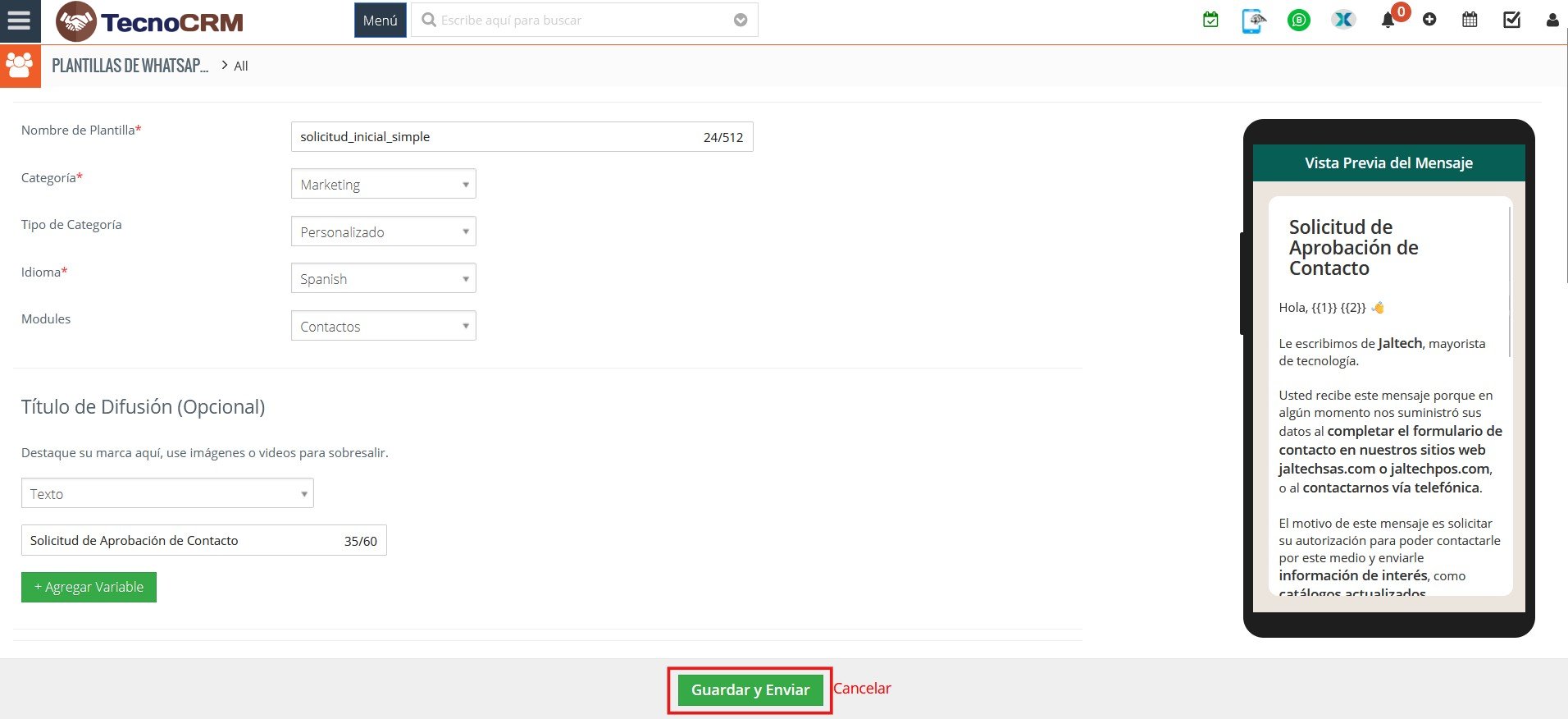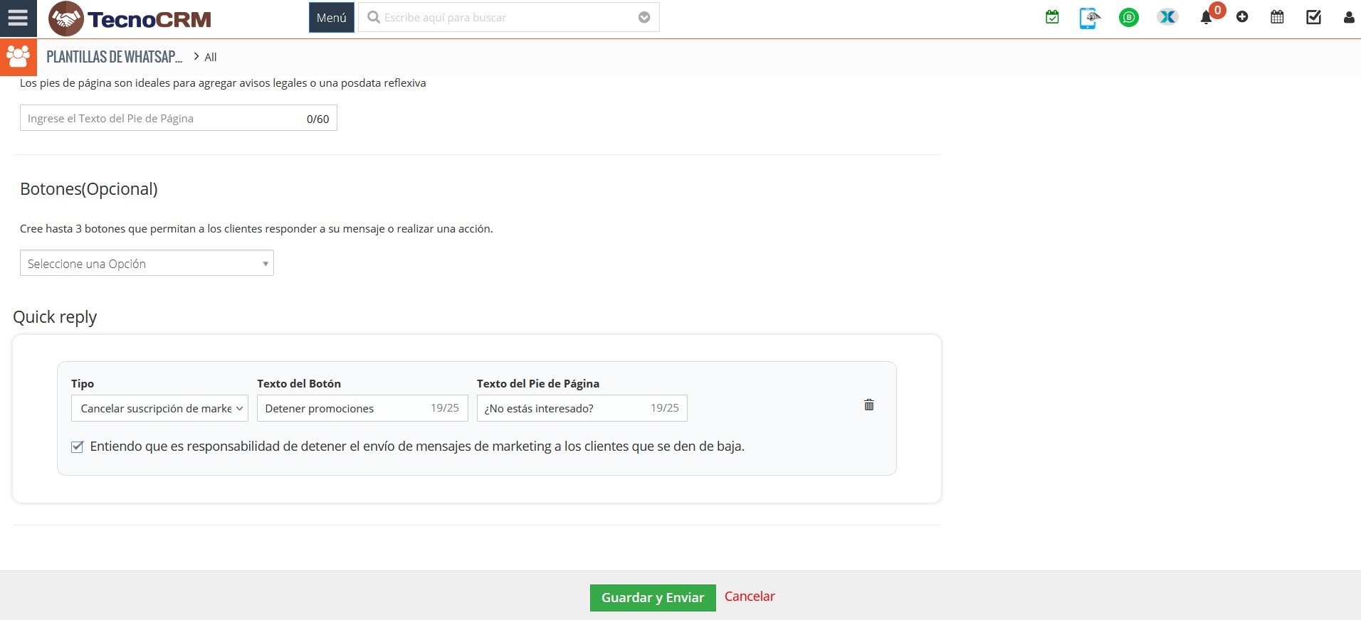 - Guardar y enviar: Meta revisará la plantilla para su aprobación.