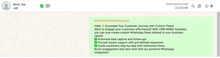 El mensaje resaltado coincide exactamente con el contenido que se muestra en la sección “Cuerpo” y en los campos “Mensaje de WhatsApp para enviar” en la vista detallada de la plantilla de WhatsApp. Esto garantiza la coherencia entre los detalles de la plantilla y el mensaje recibido en el chat. El destinatario puede ver el mensaje deseado con su formato y estructura durante la creación de la plantilla.