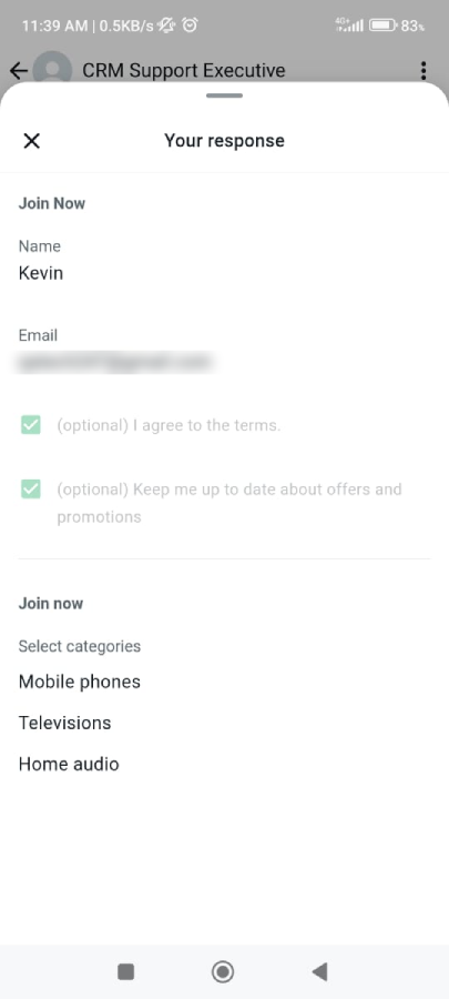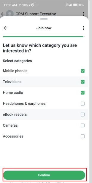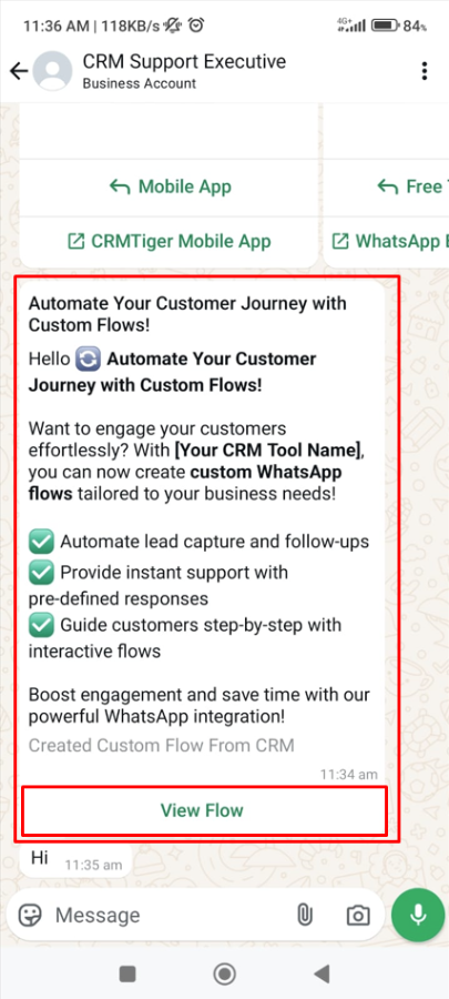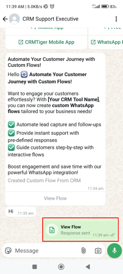 Nota: Los mensajes de tipo categoría de flujo solo se mostrarán en WhatsApp móvil, no se mostrarán en la vista web de WhatsApp.