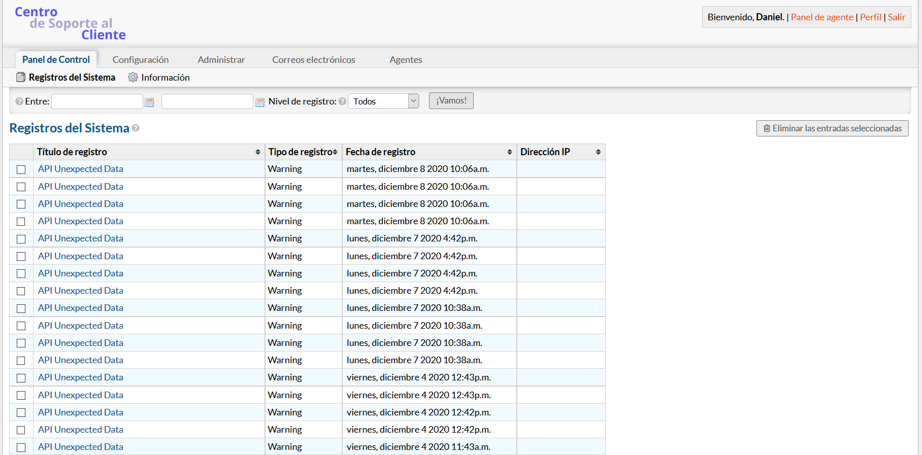 Para eliminar cualquier entrada del registro, simplemente marque la casilla de verificación junto al registro y presione el botón ‘Eliminar entradas seleccionadas’ en la parte superior derecha.