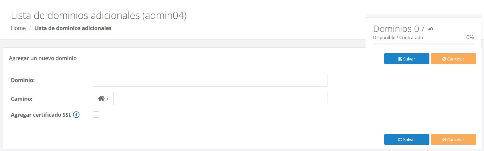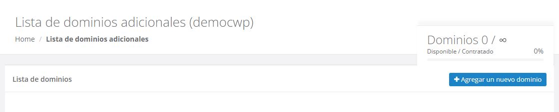 El número límite de dominios que puede agregar estará definido por el paquete que se haya comprado.