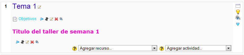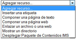 Las etiquetas son pues la forma de añadir texto (o imágenes) a la página principal del curso, de hecho a cada una de las cajas de bloques temáticos de la columna central. Puede añadir todas las etiquetas necesarias a cada bloque temático utilizando la caja desplegable de agregar recurso. , como hemos visto para otros elementos de TecnoLearning. Puede combinar recursos, actividades y etiquetas varias en el orden que mejor se ajuste a sus necesidades.