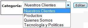 Solo debe seleccionar una de las categorías ya existentes, presionar el botón “Editar” y aparece el formulario correspondiente para ser modificado (similar al anterior). A continuación un ejemplo general: