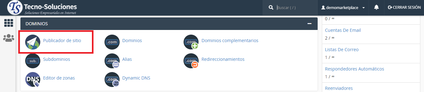 Para crear o modificar un sitio web de Site Publisher para uno de sus dominios, realice los siguientes pasos: