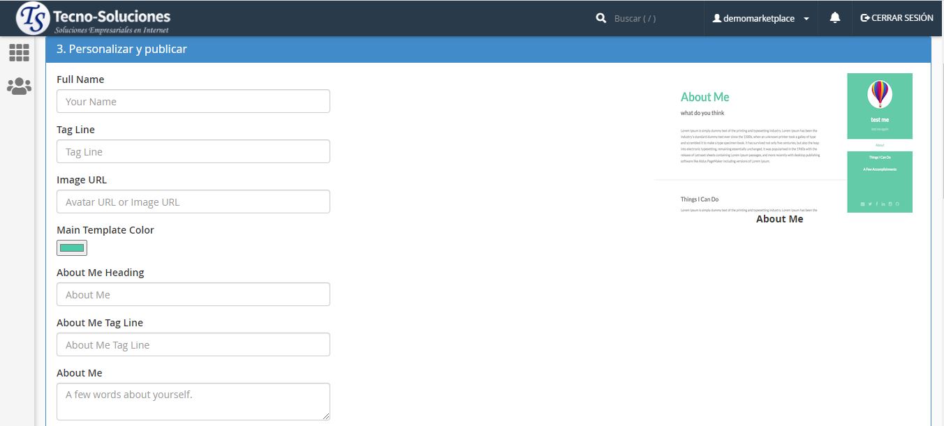 Esta interfaz le permite crear rápidamente un sitio web simple, incluso si nunca antes ha creado un sitio web. Cuando utilice esta interfaz, seleccionará una plantilla adecuada para su sitio web y luego ingresará el contenido del sitio web que solicita la plantilla.