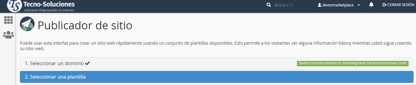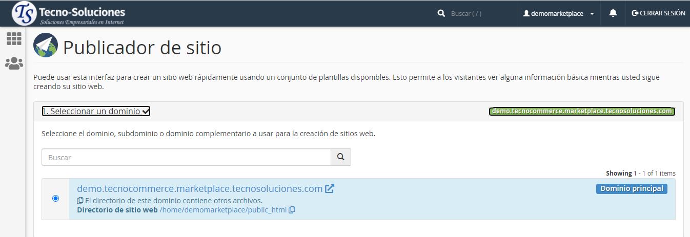 - Si solo posee un único dominio, o si accedió a esta interfaz a través de un enlace después de la creación de un subdominio o dominio adicional, el sistema selecciona automáticamente ese dominio y continúa con el siguiente paso.