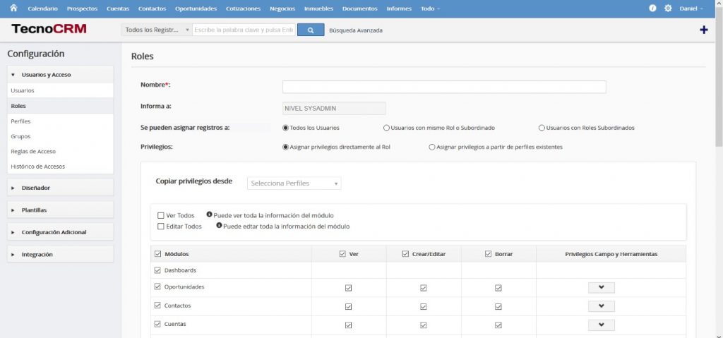 Usted tiene que dar al rol un nombre único y decidir qué perfiles estarán asociados a un rol particular. Además, se mostrará el rol superior.