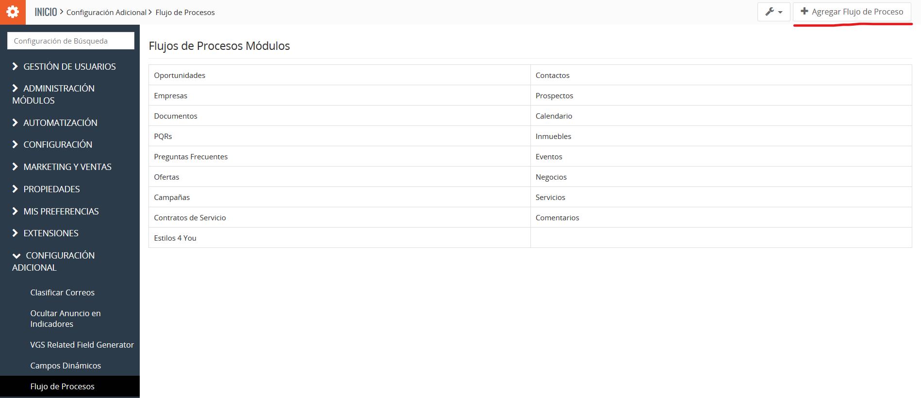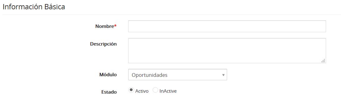 Complete la información básica que incluye el Nombre del Flujo de proceso, su Descripción, seleccione el Módulo asociado y el Estado.