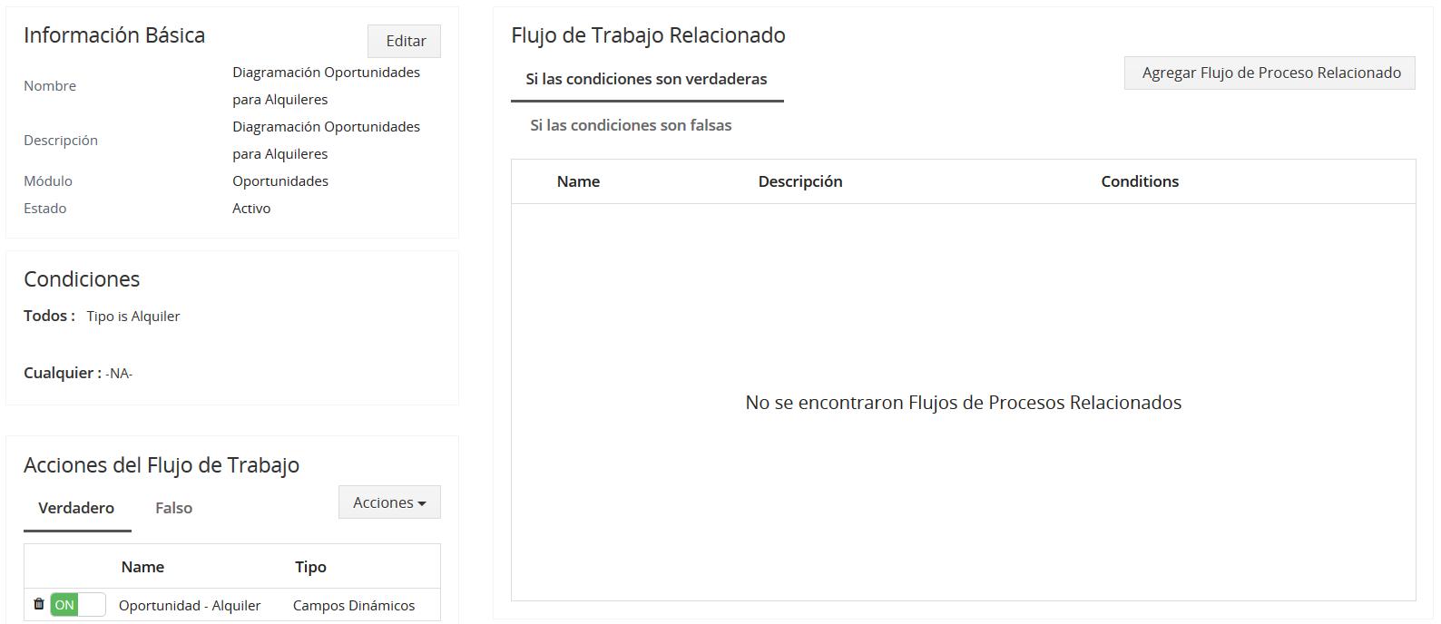 Ahora, se ha creado su flujo de proceso. Para saber cómo agregar una acción o un flujo de proceso relacionado, puede revisar las siguientes secciones.