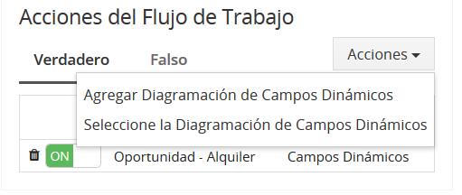 Las acciones se ejecutan cuando las condiciones son verdaderas o falsas. El módulo de Flujo de Procesos admite las acciones para los módulos Colores de Vista de Lista y Campos Dinámicos.