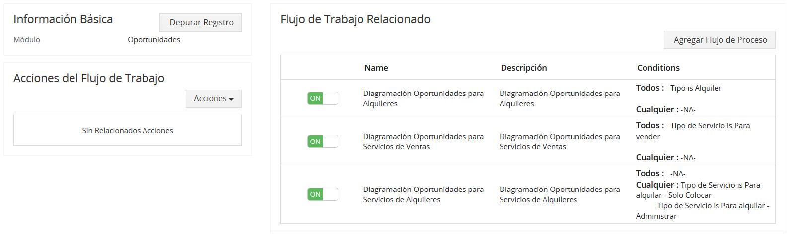 Nota: El uso de “Acciones” en la vista predeterminada cuando selecciona el módulo en el Flujo de proceso se aplicará para todos los valores, por ejemplo, Colores en Vista de Lista, ya que estos no tienen condiciones.