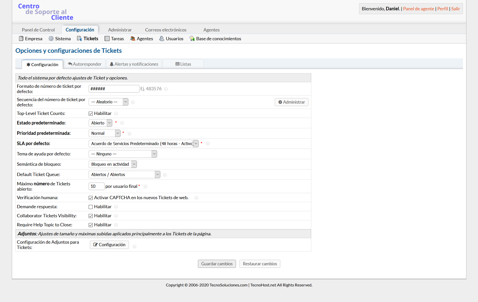 Número máximo de tickets abiertos: número máximo de tickets abiertos permitidos por correo electrónico / usuario; ayuda con el control de la inundación de correo no deseado y correo electrónico: puede ingresar 0 para ilimitado.