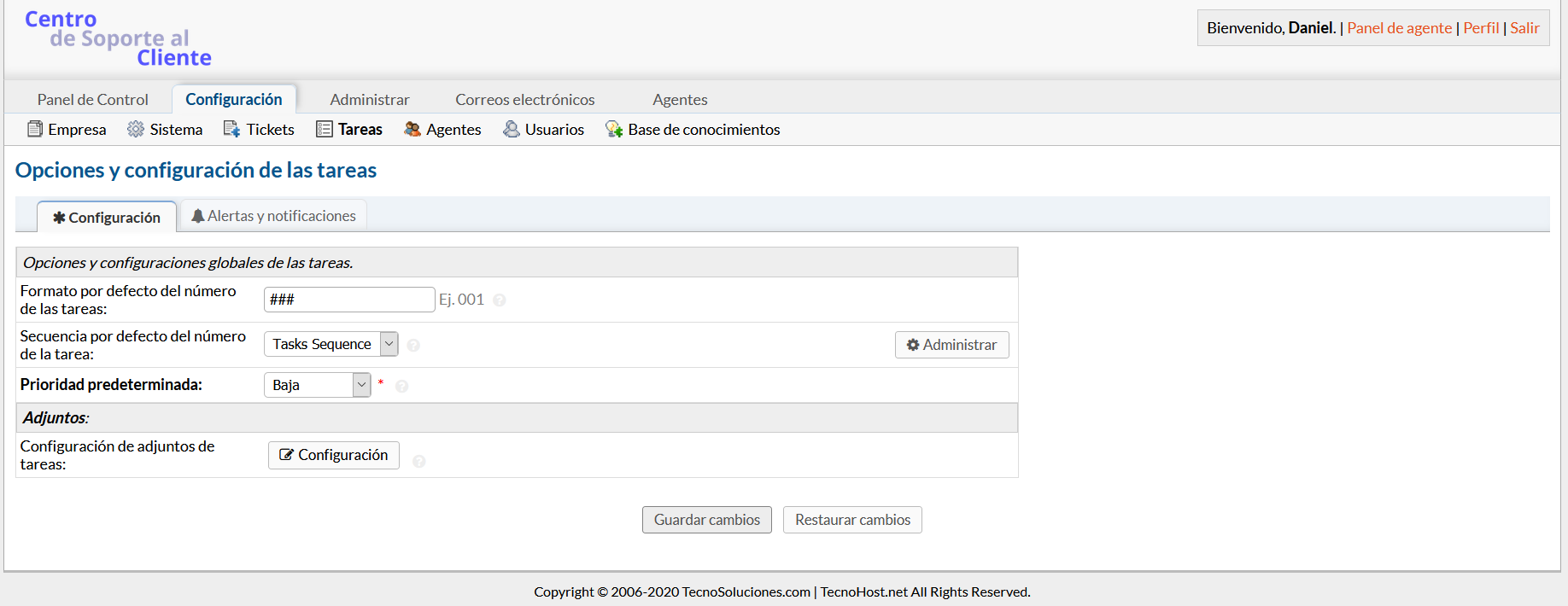 Archivos adjuntos: configure los ajustes para los archivos adjuntos al campo Descripción . Esta configuración se utiliza para todas las tareas y los mensajes nuevos, independientemente del canal de origen (portal web, correo electrónico, api, etc.).