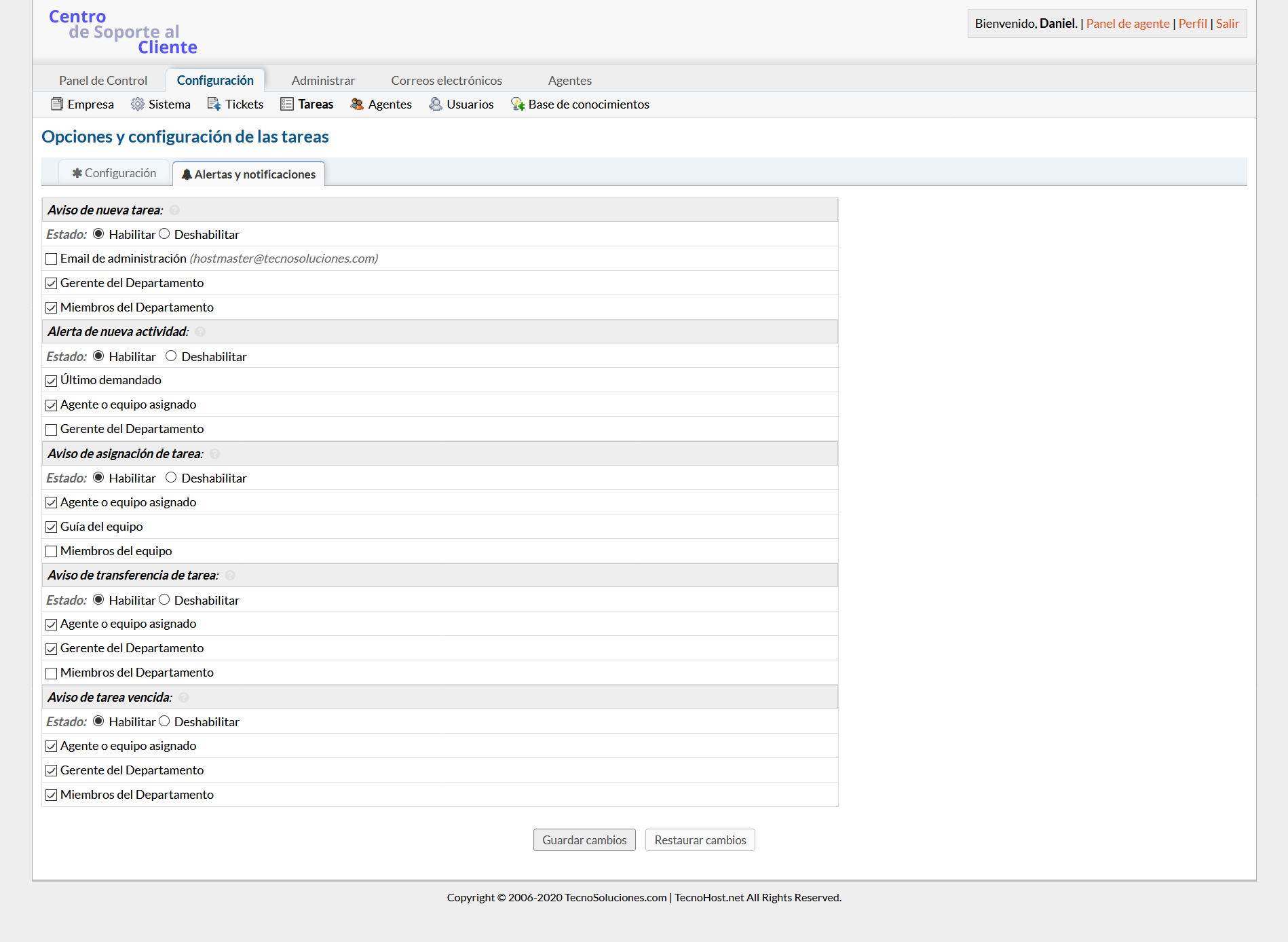 Alerta de transferencia de tareas: alerta enviada a los agentes sobre la transferencia de tareas entre departamentos.