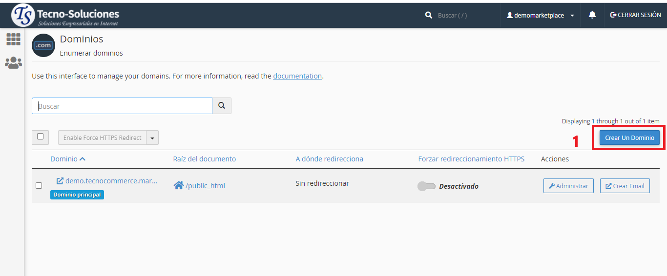 Crear un dominio nuevo