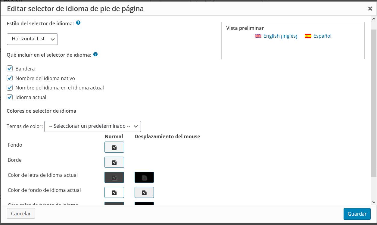 También podrá elegir colores para todas las partes del selector de idiomas.