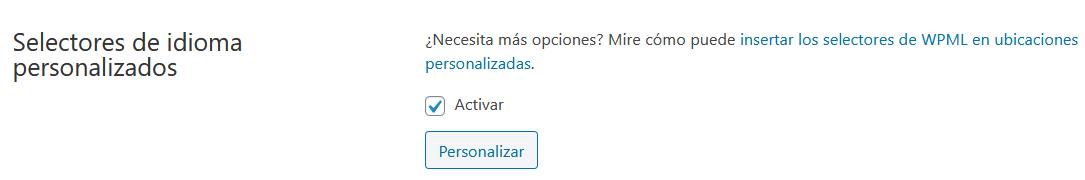 En la sección Selectores de idiomas personalizados, usted podrá activar o desactivar los selectores de idiomas personalizados de su sitio.