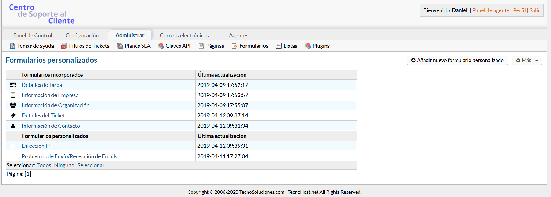 Panel de administración > Administrar > Formularios