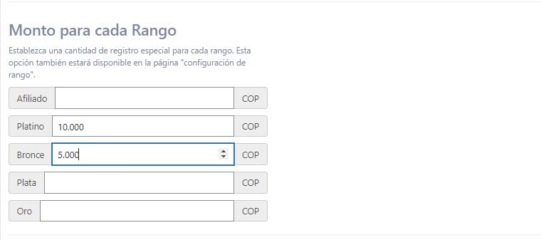 Puede establecer una cantidad predeterminada que esté disponible para todos los rangos, pero también puede establecer una cantidad para cada rango específico. La cantidad de un rango específico anula la predeterminada.