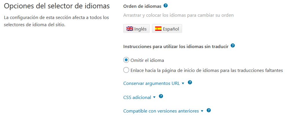 Para obtener información completa sobre los distintos estilos de selectores de idiomas que puede agregar a su sitio, puede leer las opciones de selectores de idiomas.