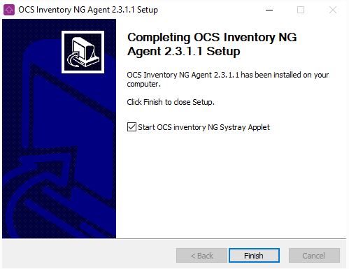 Haga clic en el botón “Finalizar” para cerrar Agente de OCS Inventory NG Setup.