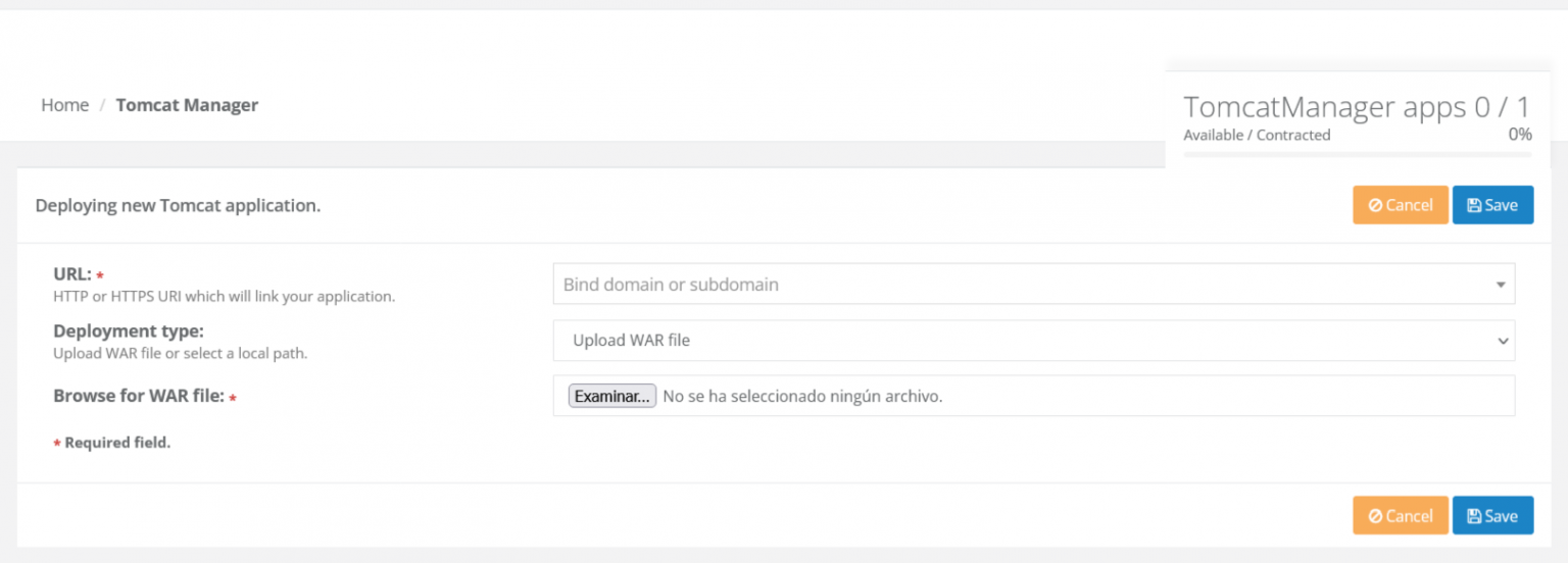 - Navegador para archivo WAR: archivo requerido.