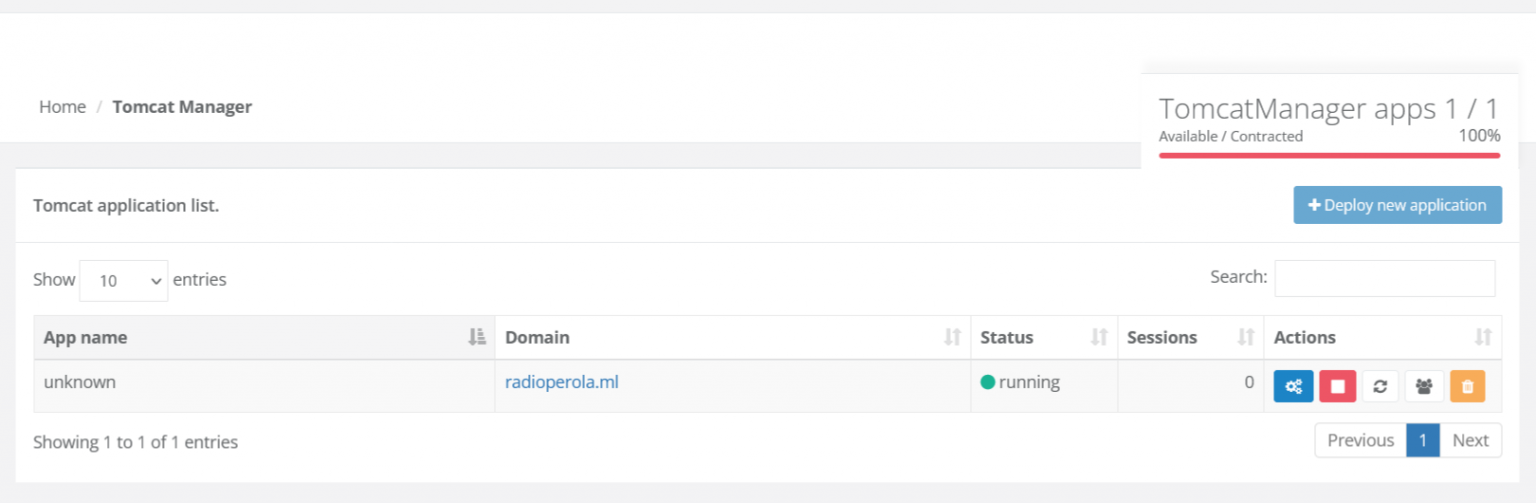 Una vez que se hayan agregado todos los requisitos, podrá ver su aplicación en la lista de aplicaciones de Tomcat.