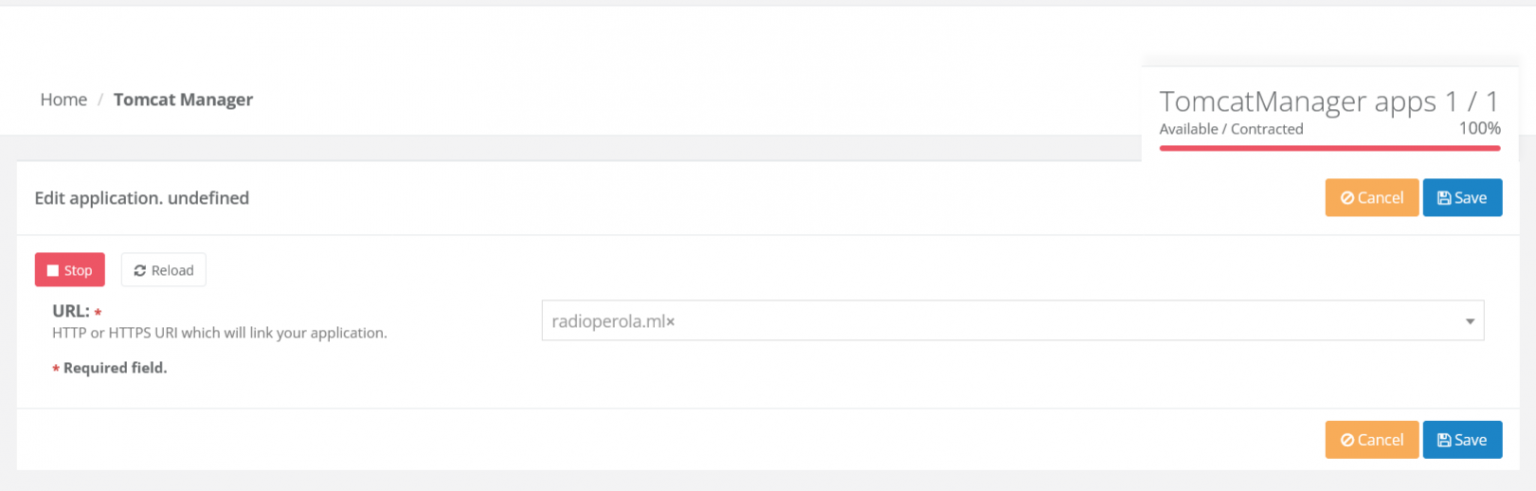 Dominios --> Administrador de Tomcat